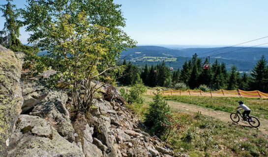 Die Umgebung rund um das Mineral- und Moorheilbad Bad Alexandersbad bietet Ihnen ein breit gefächertes Aktivprogramm in Form von Wandern, Radfahren, Wintersport und Entdeckungstouren durch die Region. Wandern Sie durch das Felsenlabyrinth Luisenburg und besuchen Sie den Wildpark Waldhaus Mehlmeisel oder den Greifvogelpark Katharinenberg. Hoch hinaus geht es auf den zweithöchsten Gipfel im Fichtelgebirge – den Ochsenkopf. Wer es rasant mag, sollte eine Fahrt mit dem Alpine Coaster Ochsenkopf unternehmen. Der Fichtelsee liegt in 750 m Höhe zwischen Wald und Moor und ist nicht nur im Sommer fürs Schwimmen, SUP oder Bootsfahren ein Highlight. Zu Tagesausflügen laden Bayreuth mit dem Markgräflichen Opernhaus, verschiedenen Schlössern und der Eremitage ein. Zusammen mit Franzensbad (CZ) und dem bayerischen Sibyllenbad bildet Bad Alexandersbad das bayerisch-böhmische Bäderdreieck, ideal für Ausflüge in die Tschechische Republik.